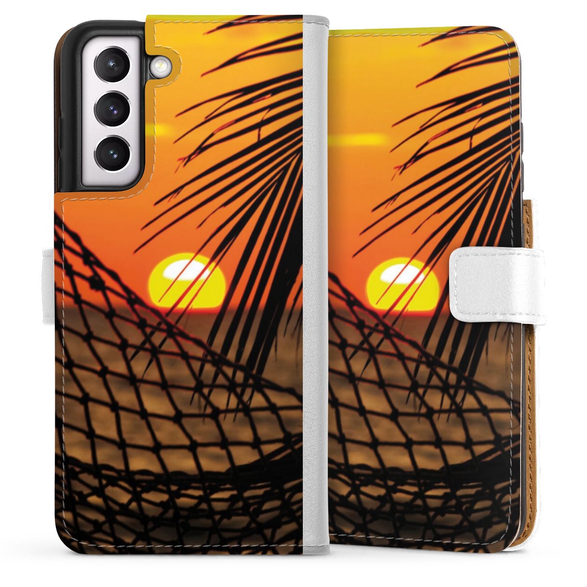 For our Sideflip Case we are using our advanced direct printing technology. The back and frontside are fully printabale, the inside of the phone bag is left unprinted. You can order the phone case without print, printed completely or also with a partial print.