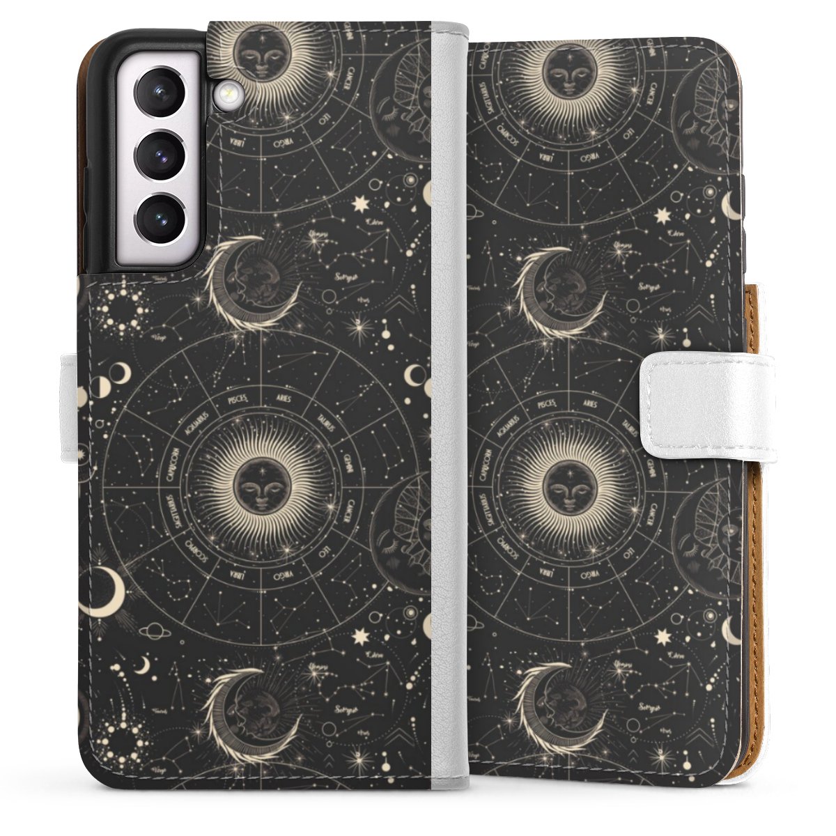 For our Sideflip Case we are using our advanced direct printing technology. The back and frontside are fully printabale, the inside of the phone bag is left unprinted. You can order the phone case without print, printed completely or also with a partial print.