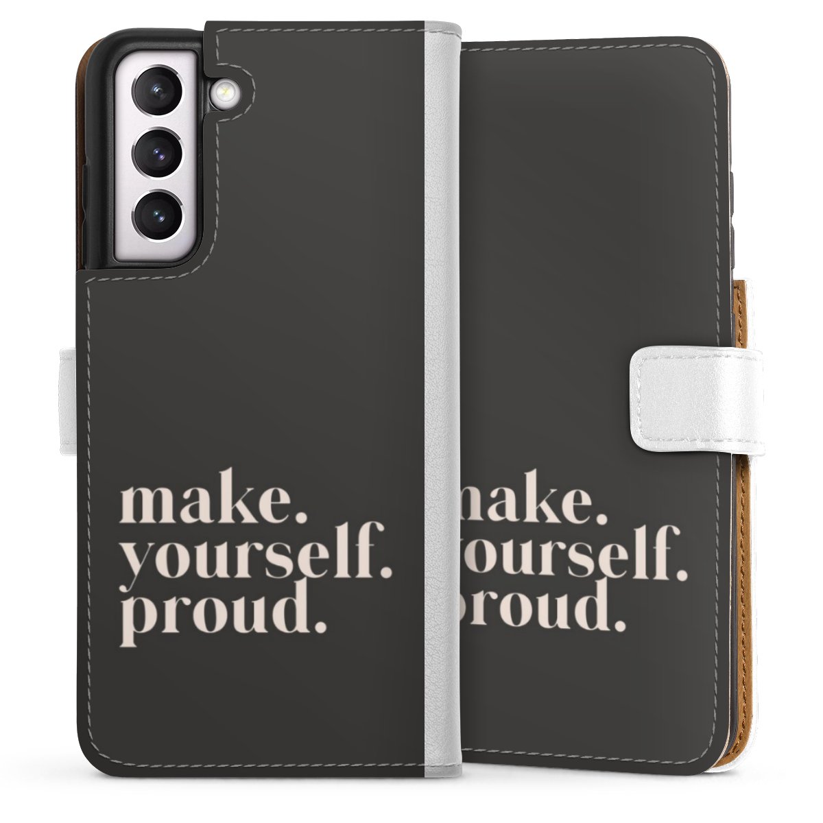 For our Sideflip Case we are using our advanced direct printing technology. The back and frontside are fully printabale, the inside of the phone bag is left unprinted. You can order the phone case without print, printed completely or also with a partial print.