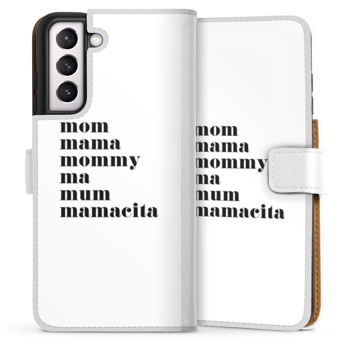 For our Sideflip Case we are using our advanced direct printing technology. The back and frontside are fully printabale, the inside of the phone bag is left unprinted. You can order the phone case without print, printed completely or also with a partial print.