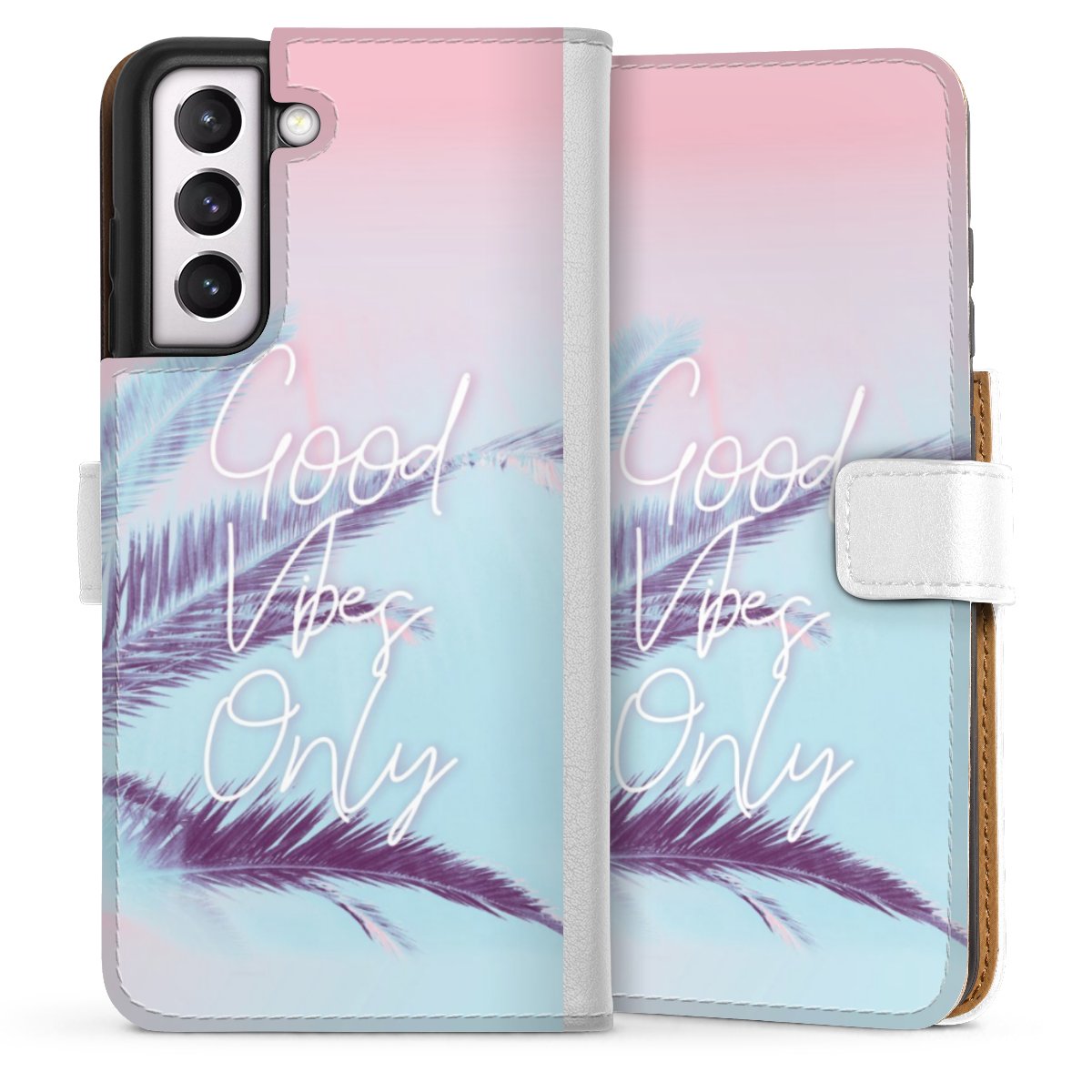 For our Sideflip Case we are using our advanced direct printing technology. The back and frontside are fully printabale, the inside of the phone bag is left unprinted. You can order the phone case without print, printed completely or also with a partial print.