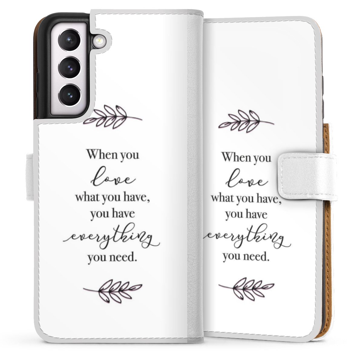 For our Sideflip Case we are using our advanced direct printing technology. The back and frontside are fully printabale, the inside of the phone bag is left unprinted. You can order the phone case without print, printed completely or also with a partial print.