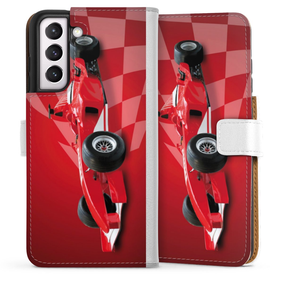 For our Sideflip Case we are using our advanced direct printing technology. The back and frontside are fully printabale, the inside of the phone bag is left unprinted. You can order the phone case without print, printed completely or also with a partial print.