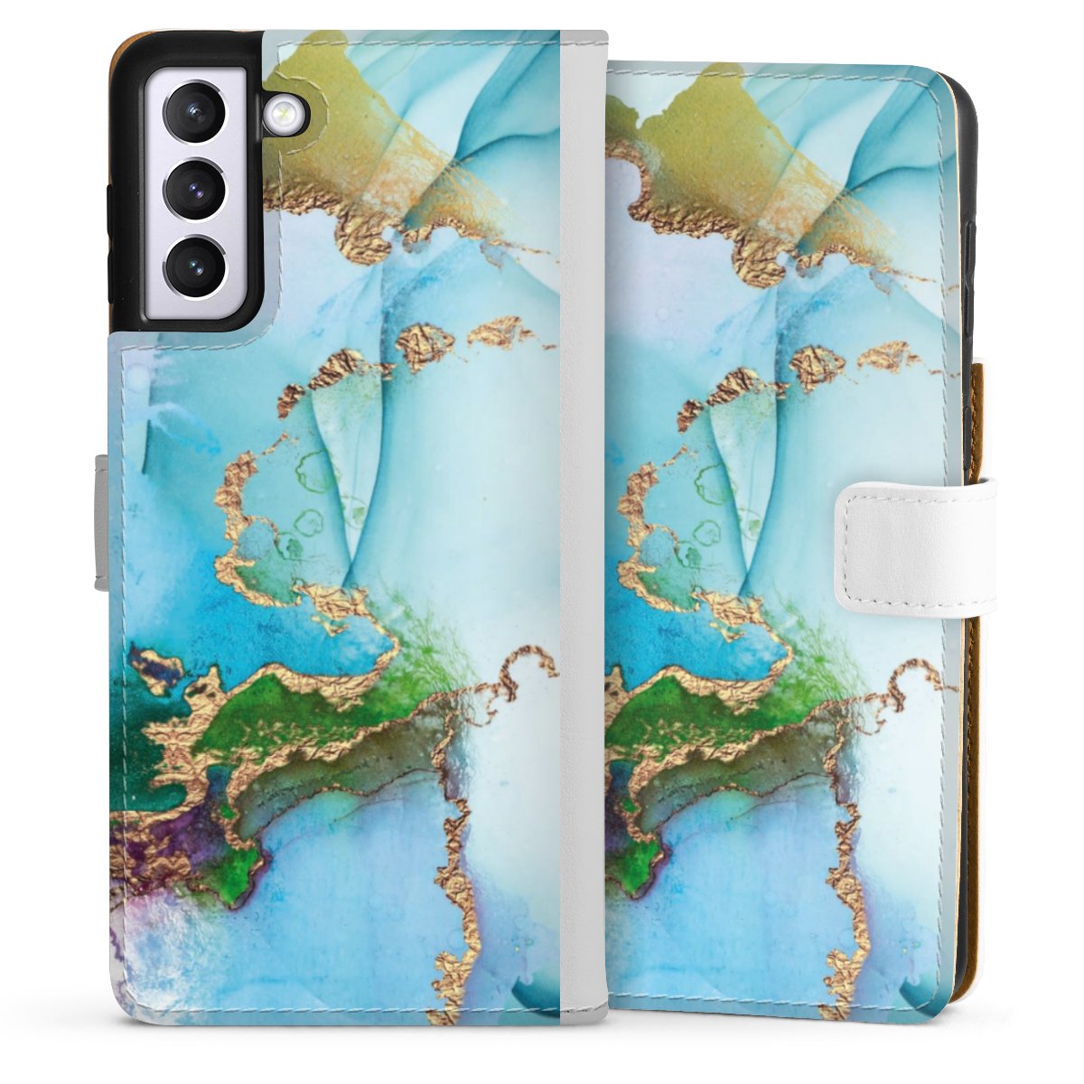 For our Sideflip Case we are using our advanced direct printing technology. The back and frontside are fully printabale, the inside of the phone bag is left unprinted. You can order the phone case without print, printed completely or also with a partial print.