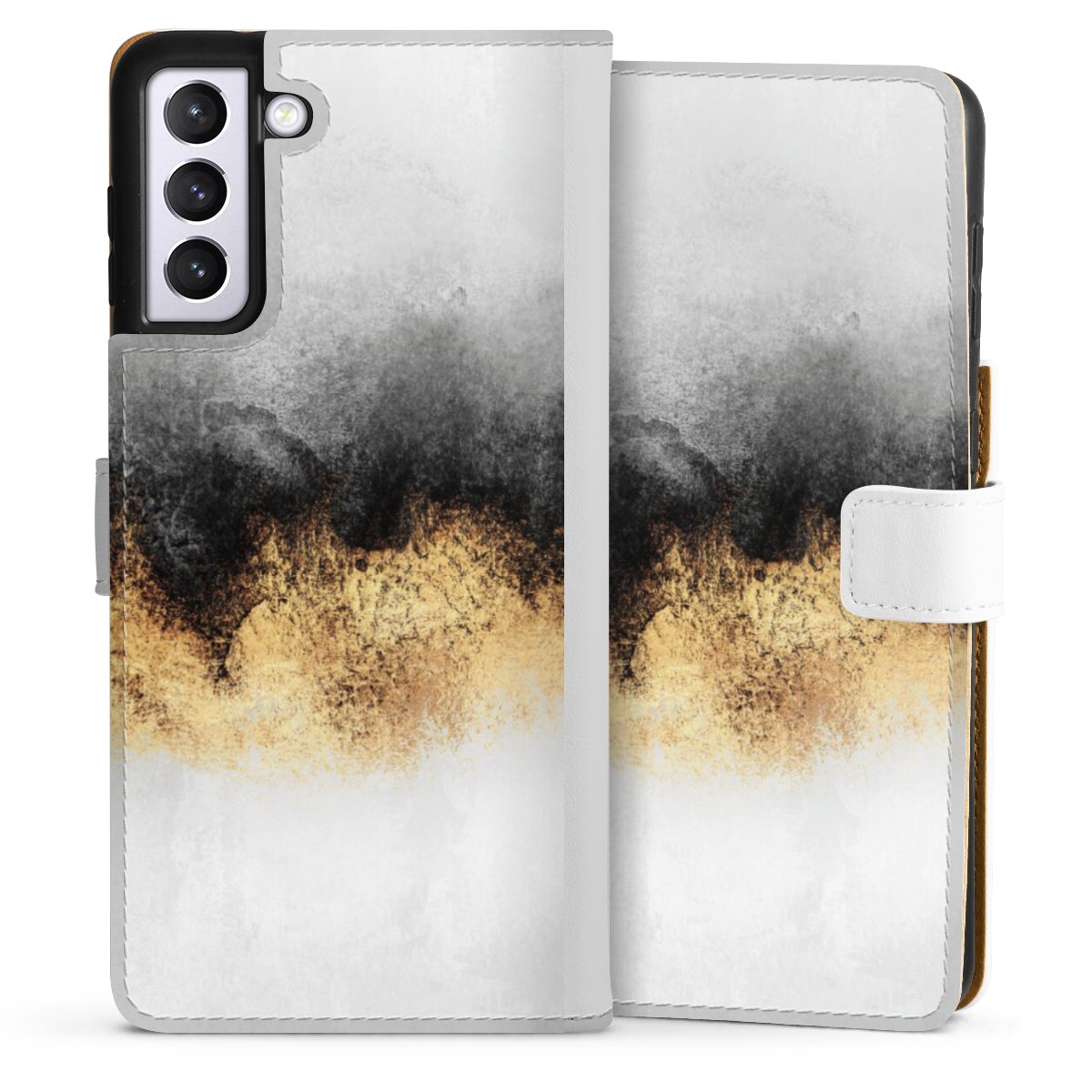 For our Sideflip Case we are using our advanced direct printing technology. The back and frontside are fully printabale, the inside of the phone bag is left unprinted. You can order the phone case without print, printed completely or also with a partial print.