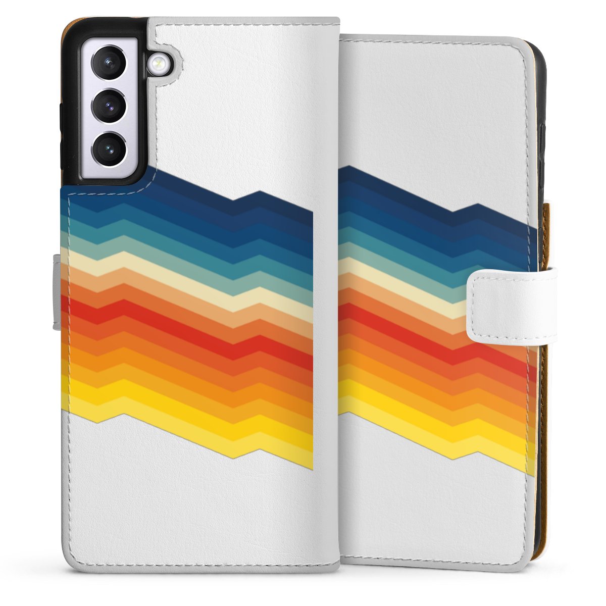 For our Sideflip Case we are using our advanced direct printing technology. The back and frontside are fully printabale, the inside of the phone bag is left unprinted. You can order the phone case without print, printed completely or also with a partial print.
