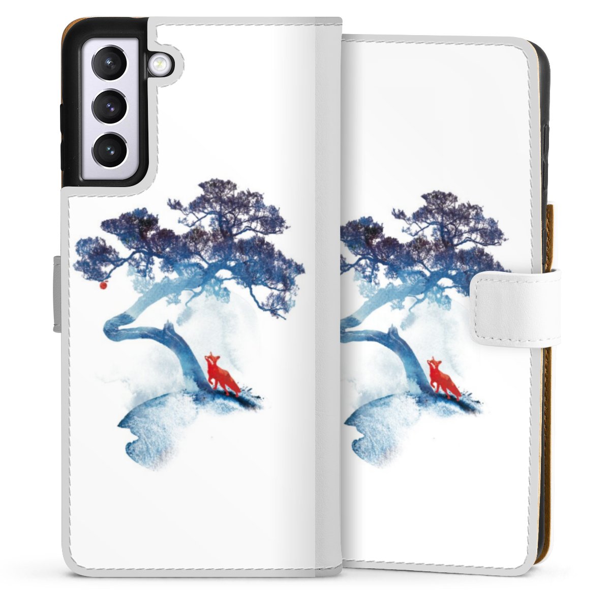 For our Sideflip Case we are using our advanced direct printing technology. The back and frontside are fully printabale, the inside of the phone bag is left unprinted. You can order the phone case without print, printed completely or also with a partial print.