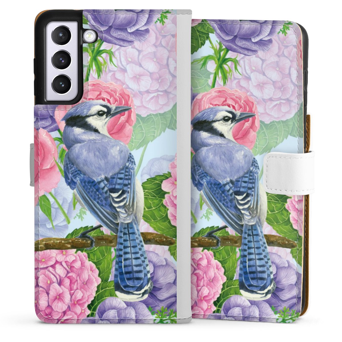 For our Sideflip Case we are using our advanced direct printing technology. The back and frontside are fully printabale, the inside of the phone bag is left unprinted. You can order the phone case without print, printed completely or also with a partial print.