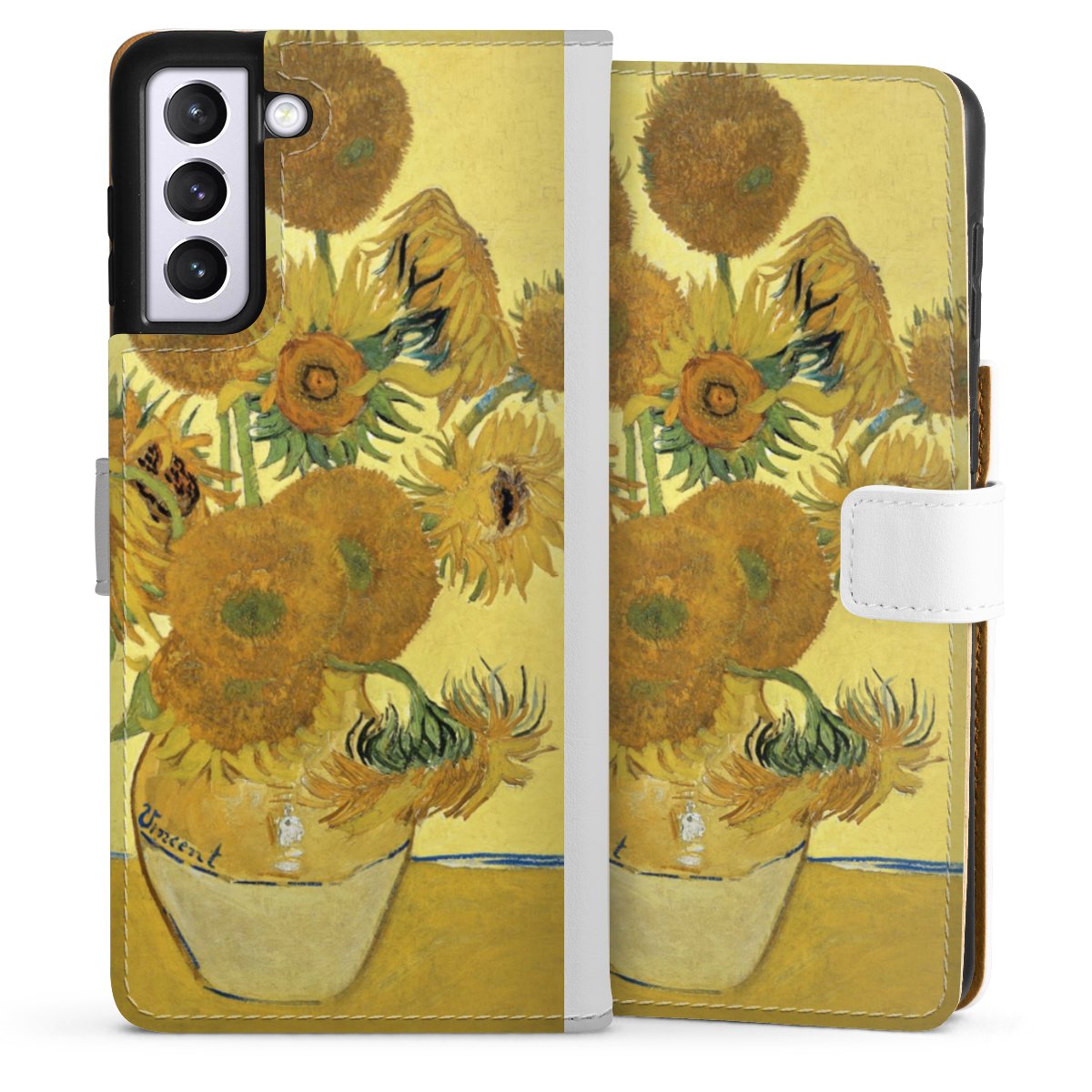 For our Sideflip Case we are using our advanced direct printing technology. The back and frontside are fully printabale, the inside of the phone bag is left unprinted. You can order the phone case without print, printed completely or also with a partial print.