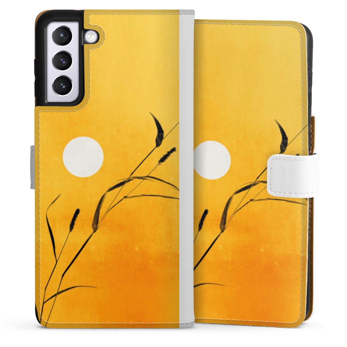For our Sideflip Case we are using our advanced direct printing technology. The back and frontside are fully printabale, the inside of the phone bag is left unprinted. You can order the phone case without print, printed completely or also with a partial print.