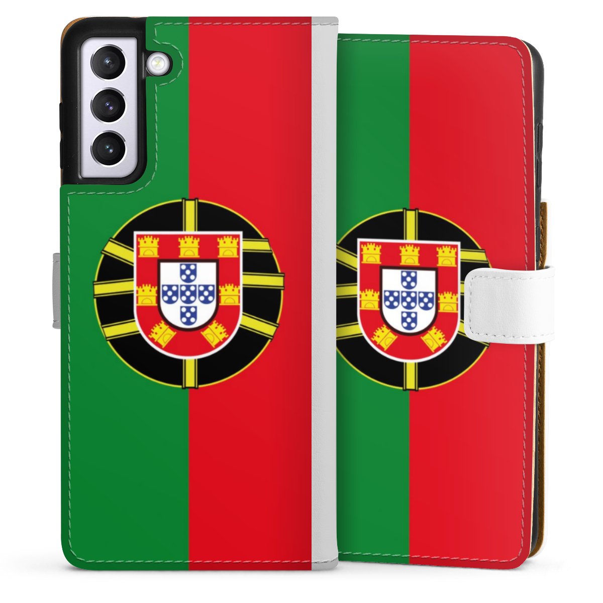 For our Sideflip Case we are using our advanced direct printing technology. The back and frontside are fully printabale, the inside of the phone bag is left unprinted. You can order the phone case without print, printed completely or also with a partial print.