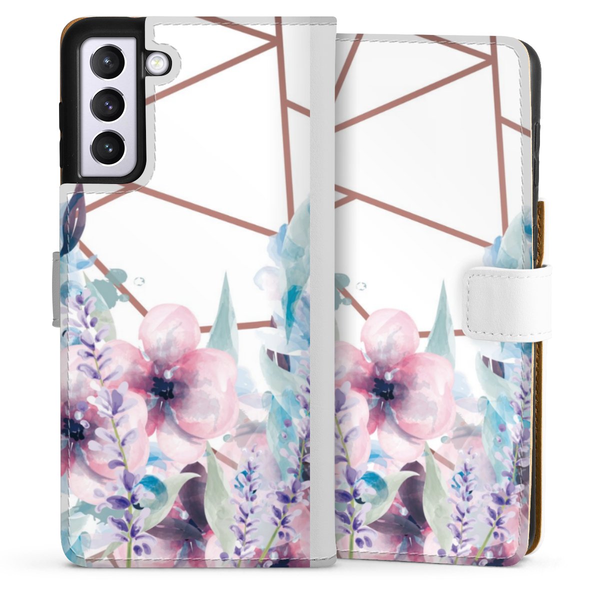 For our Sideflip Case we are using our advanced direct printing technology. The back and frontside are fully printabale, the inside of the phone bag is left unprinted. You can order the phone case without print, printed completely or also with a partial print.