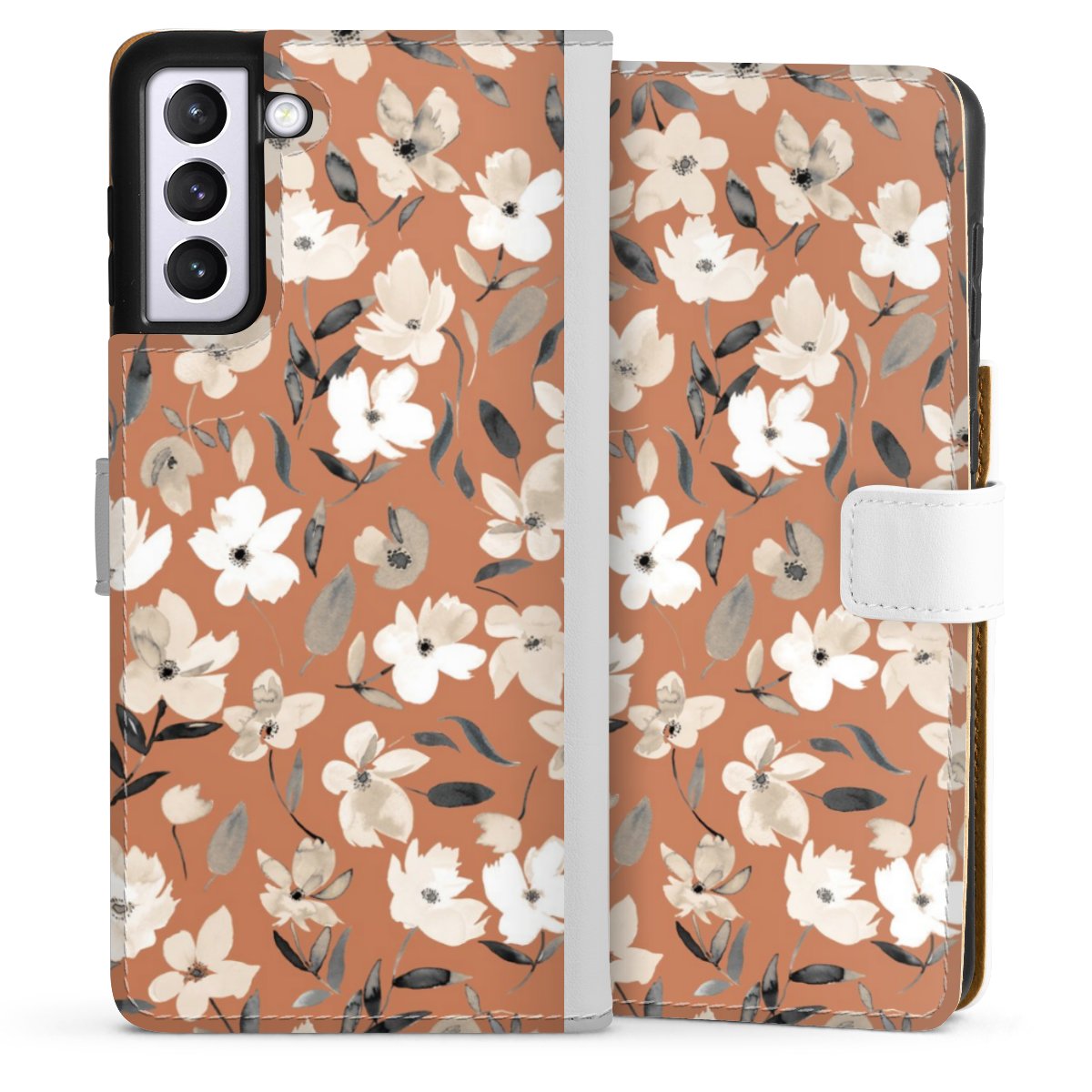 For our Sideflip Case we are using our advanced direct printing technology. The back and frontside are fully printabale, the inside of the phone bag is left unprinted. You can order the phone case without print, printed completely or also with a partial print.