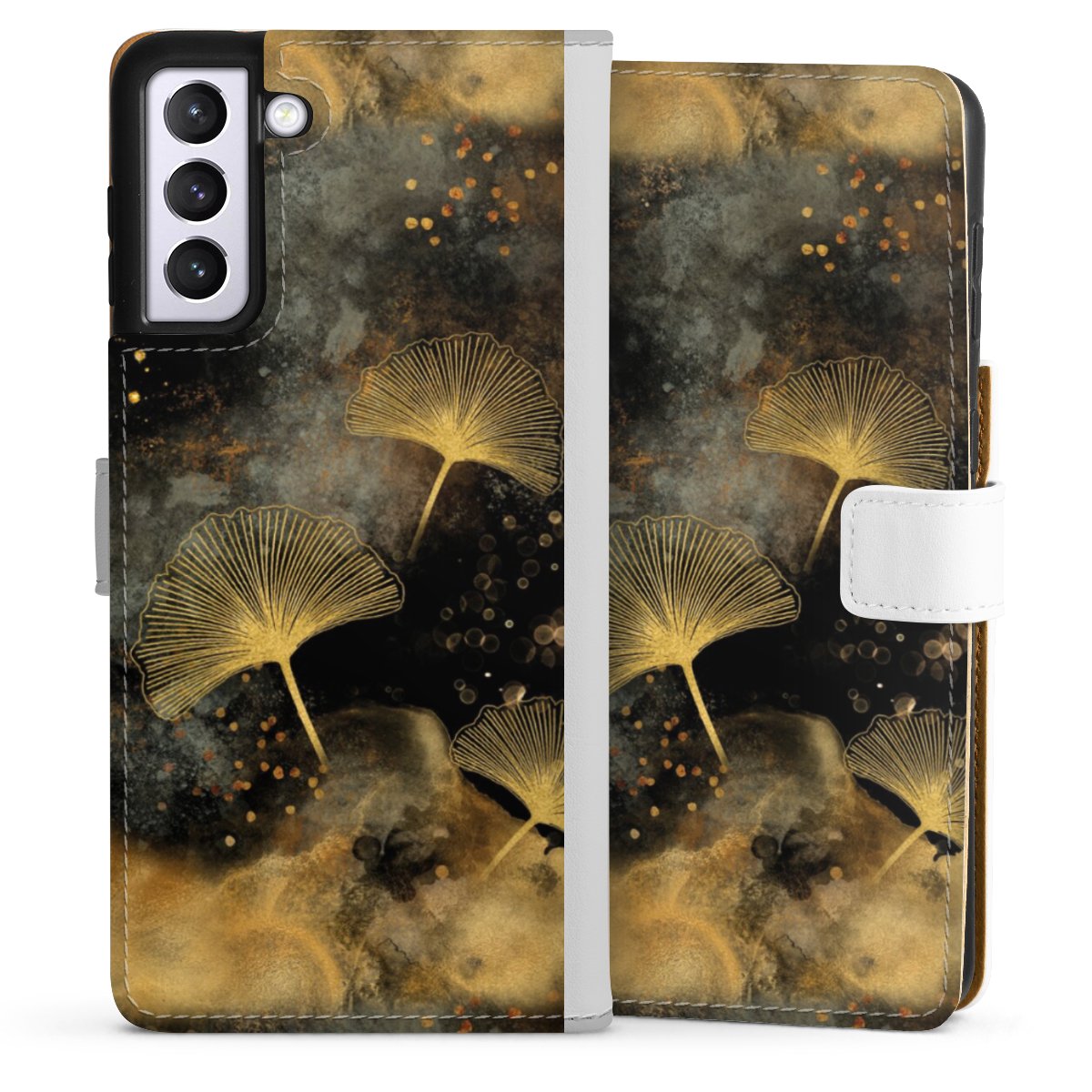For our Sideflip Case we are using our advanced direct printing technology. The back and frontside are fully printabale, the inside of the phone bag is left unprinted. You can order the phone case without print, printed completely or also with a partial print.