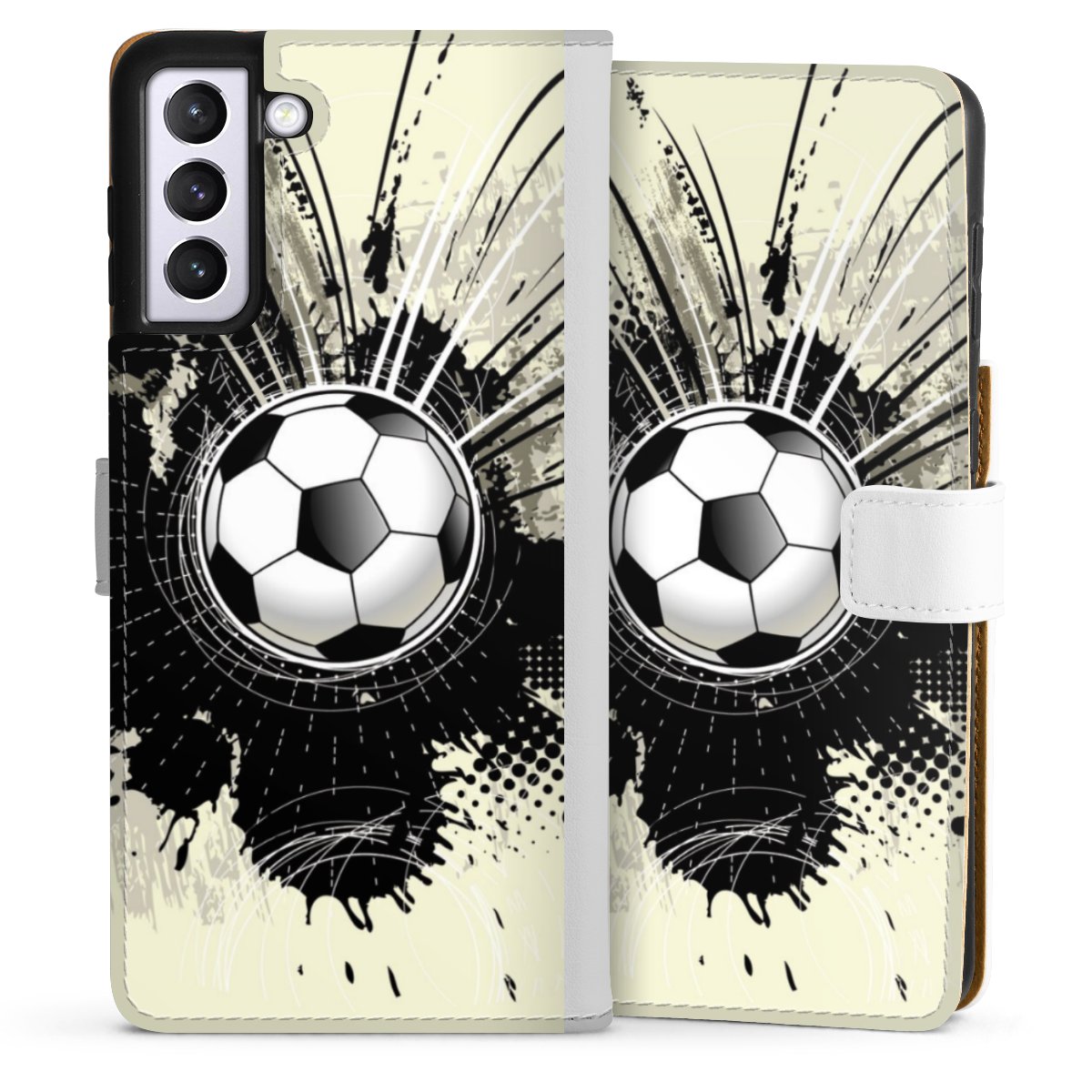 For our Sideflip Case we are using our advanced direct printing technology. The back and frontside are fully printabale, the inside of the phone bag is left unprinted. You can order the phone case without print, printed completely or also with a partial print.