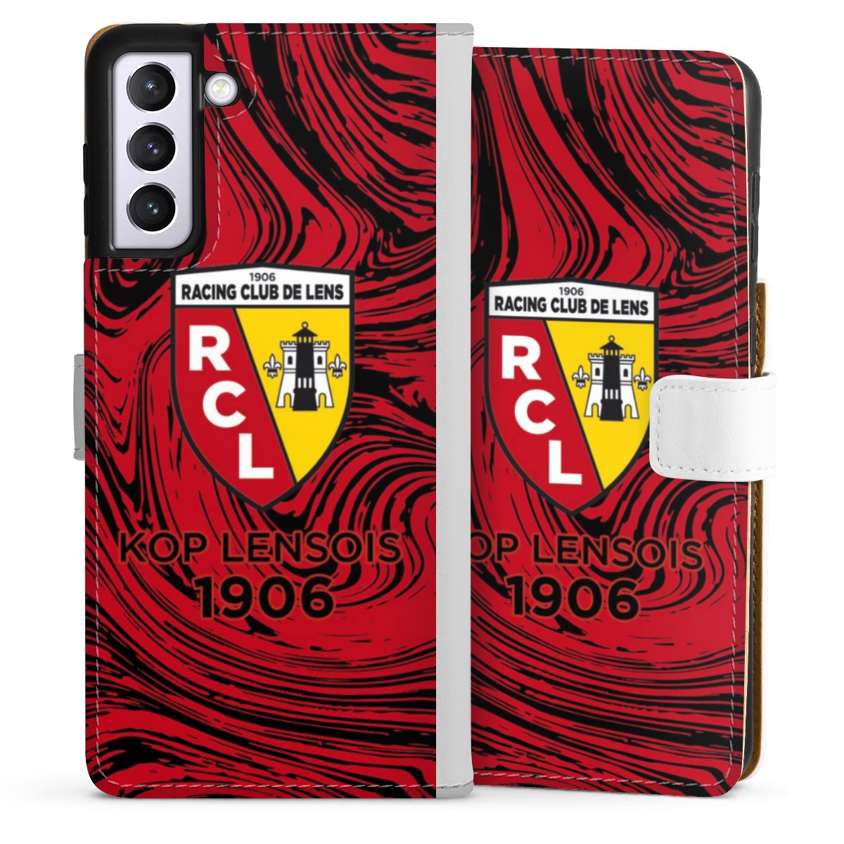 For our Sideflip Case we are using our advanced direct printing technology. The back and frontside are fully printabale, the inside of the phone bag is left unprinted. You can order the phone case without print, printed completely or also with a partial print.