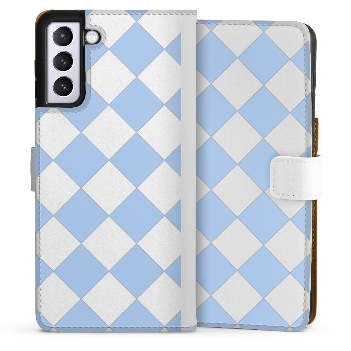 For our Sideflip Case we are using our advanced direct printing technology. The back and frontside are fully printabale, the inside of the phone bag is left unprinted. You can order the phone case without print, printed completely or also with a partial print.