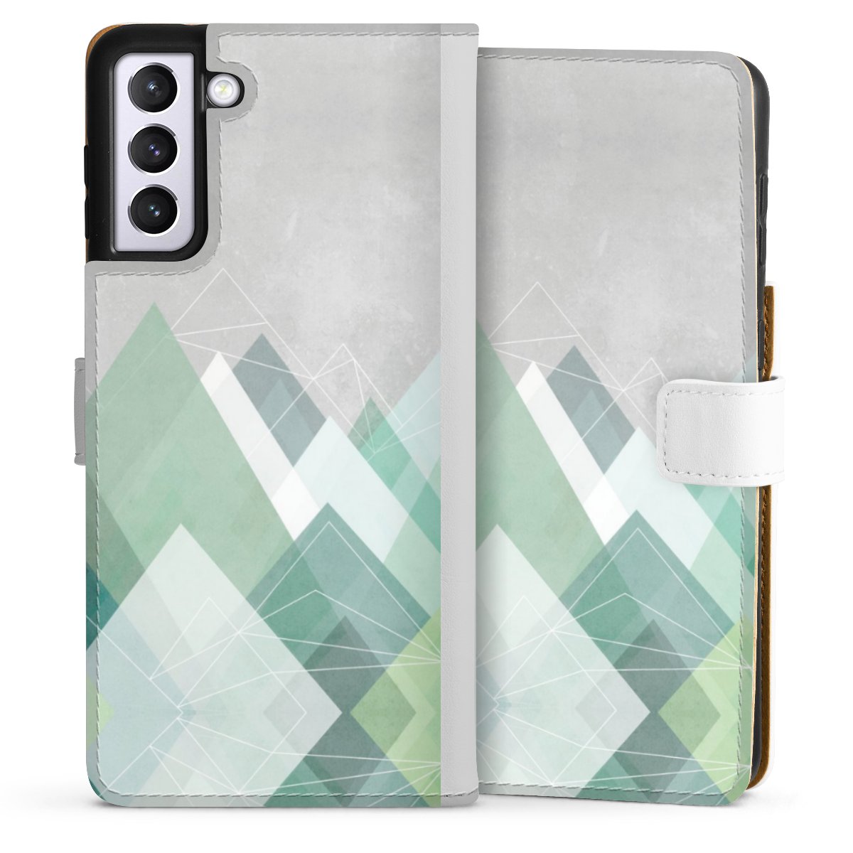 For our Sideflip Case we are using our advanced direct printing technology. The back and frontside are fully printabale, the inside of the phone bag is left unprinted. You can order the phone case without print, printed completely or also with a partial print.