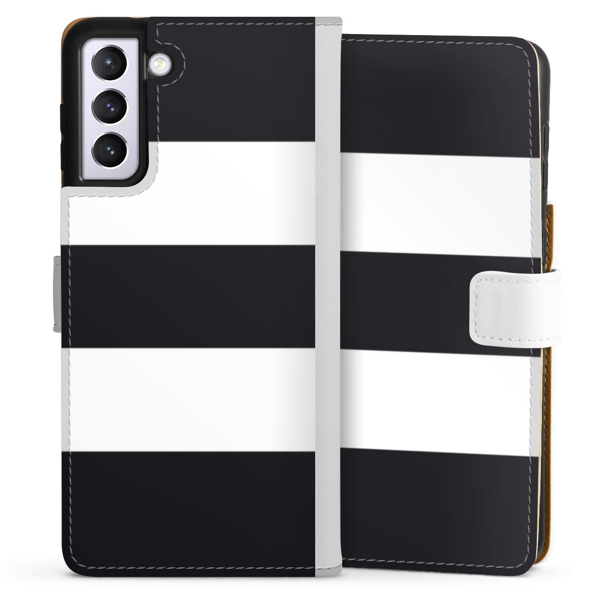 For our Sideflip Case we are using our advanced direct printing technology. The back and frontside are fully printabale, the inside of the phone bag is left unprinted. You can order the phone case without print, printed completely or also with a partial print.