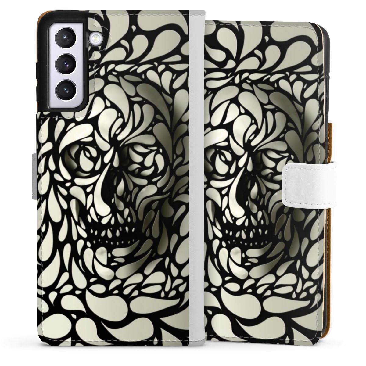 For our Sideflip Case we are using our advanced direct printing technology. The back and frontside are fully printabale, the inside of the phone bag is left unprinted. You can order the phone case without print, printed completely or also with a partial print.