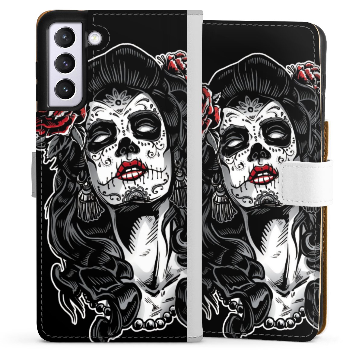 For our Sideflip Case we are using our advanced direct printing technology. The back and frontside are fully printabale, the inside of the phone bag is left unprinted. You can order the phone case without print, printed completely or also with a partial print.