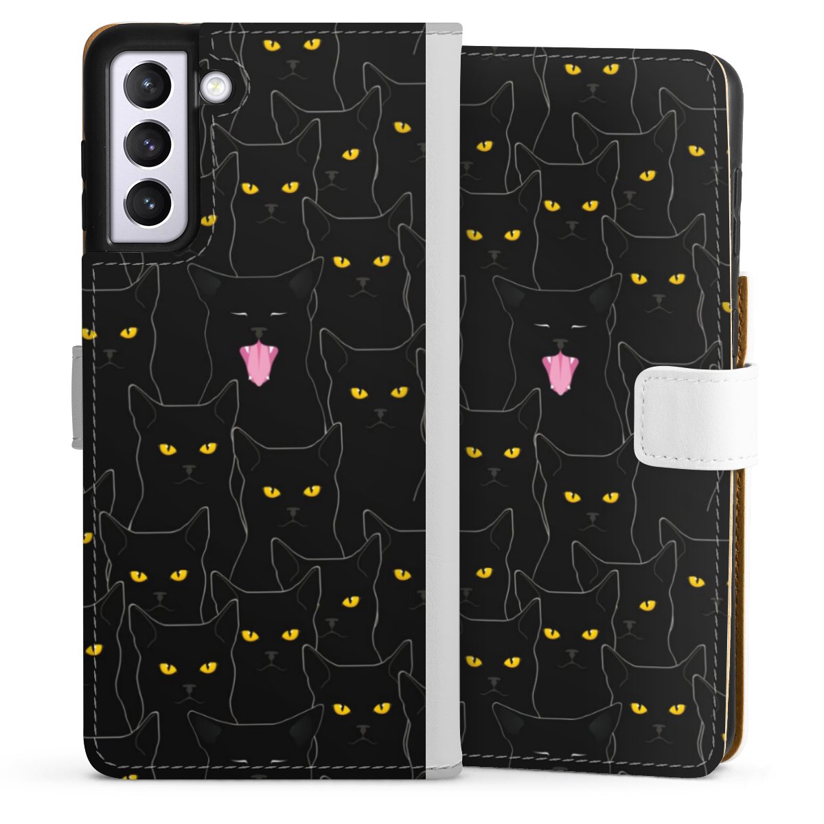 For our Sideflip Case we are using our advanced direct printing technology. The back and frontside are fully printabale, the inside of the phone bag is left unprinted. You can order the phone case without print, printed completely or also with a partial print.