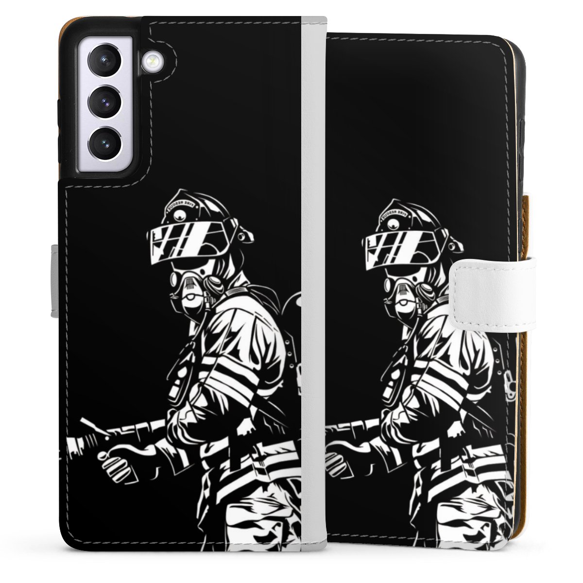 For our Sideflip Case we are using our advanced direct printing technology. The back and frontside are fully printabale, the inside of the phone bag is left unprinted. You can order the phone case without print, printed completely or also with a partial print.