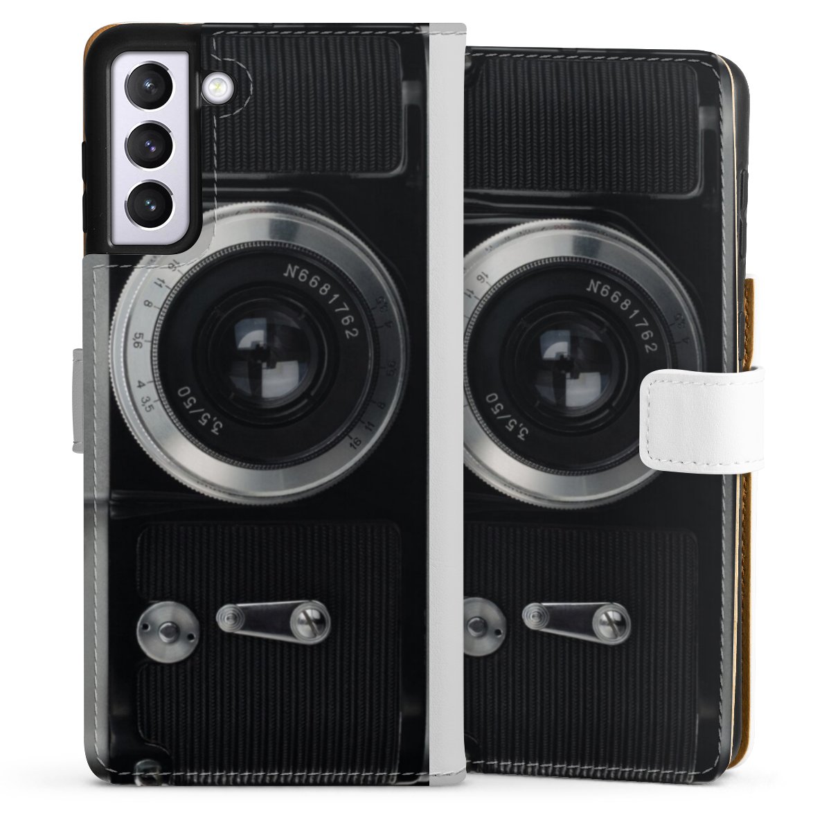 For our Sideflip Case we are using our advanced direct printing technology. The back and frontside are fully printabale, the inside of the phone bag is left unprinted. You can order the phone case without print, printed completely or also with a partial print.