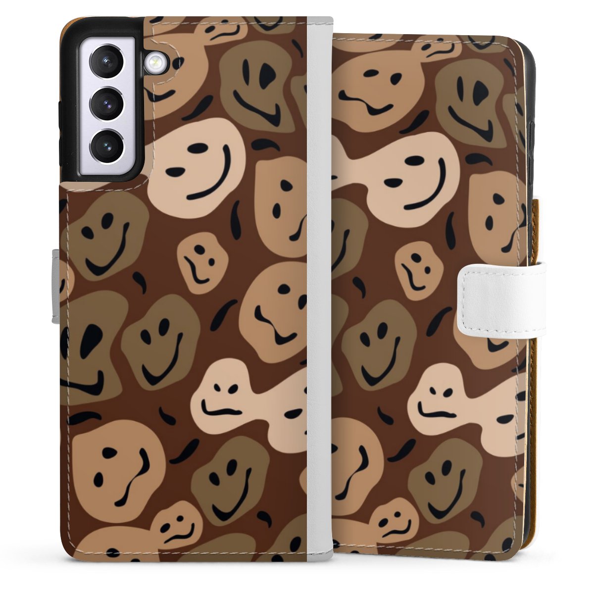 For our Sideflip Case we are using our advanced direct printing technology. The back and frontside are fully printabale, the inside of the phone bag is left unprinted. You can order the phone case without print, printed completely or also with a partial print.