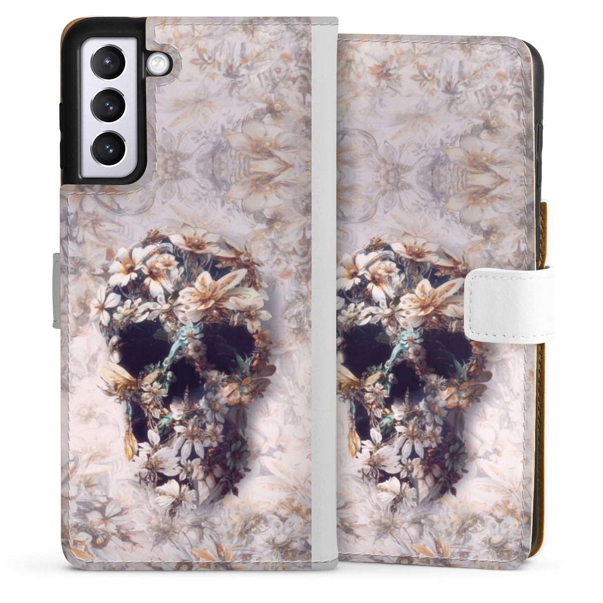 For our Sideflip Case we are using our advanced direct printing technology. The back and frontside are fully printabale, the inside of the phone bag is left unprinted. You can order the phone case without print, printed completely or also with a partial print.