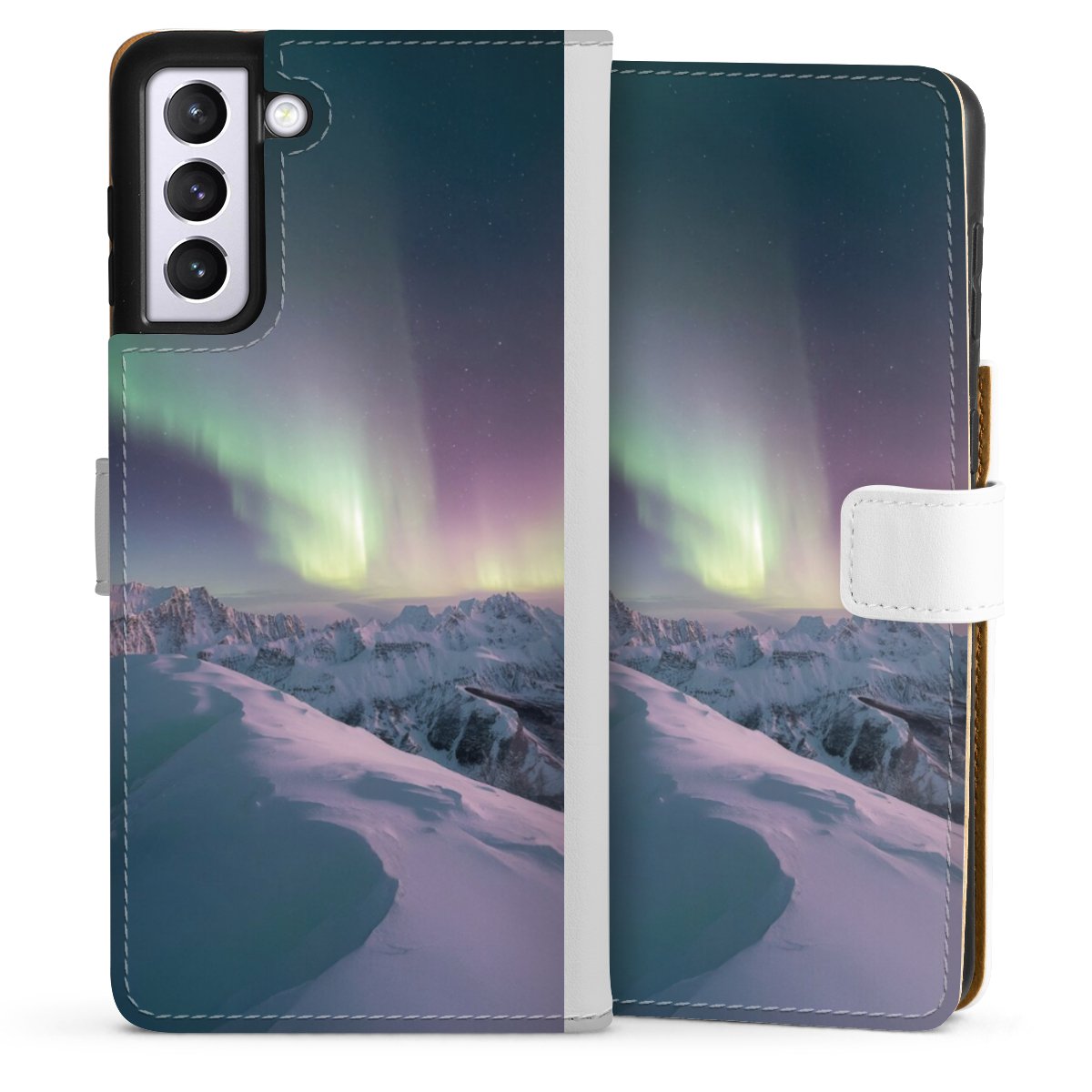 For our Sideflip Case we are using our advanced direct printing technology. The back and frontside are fully printabale, the inside of the phone bag is left unprinted. You can order the phone case without print, printed completely or also with a partial print.