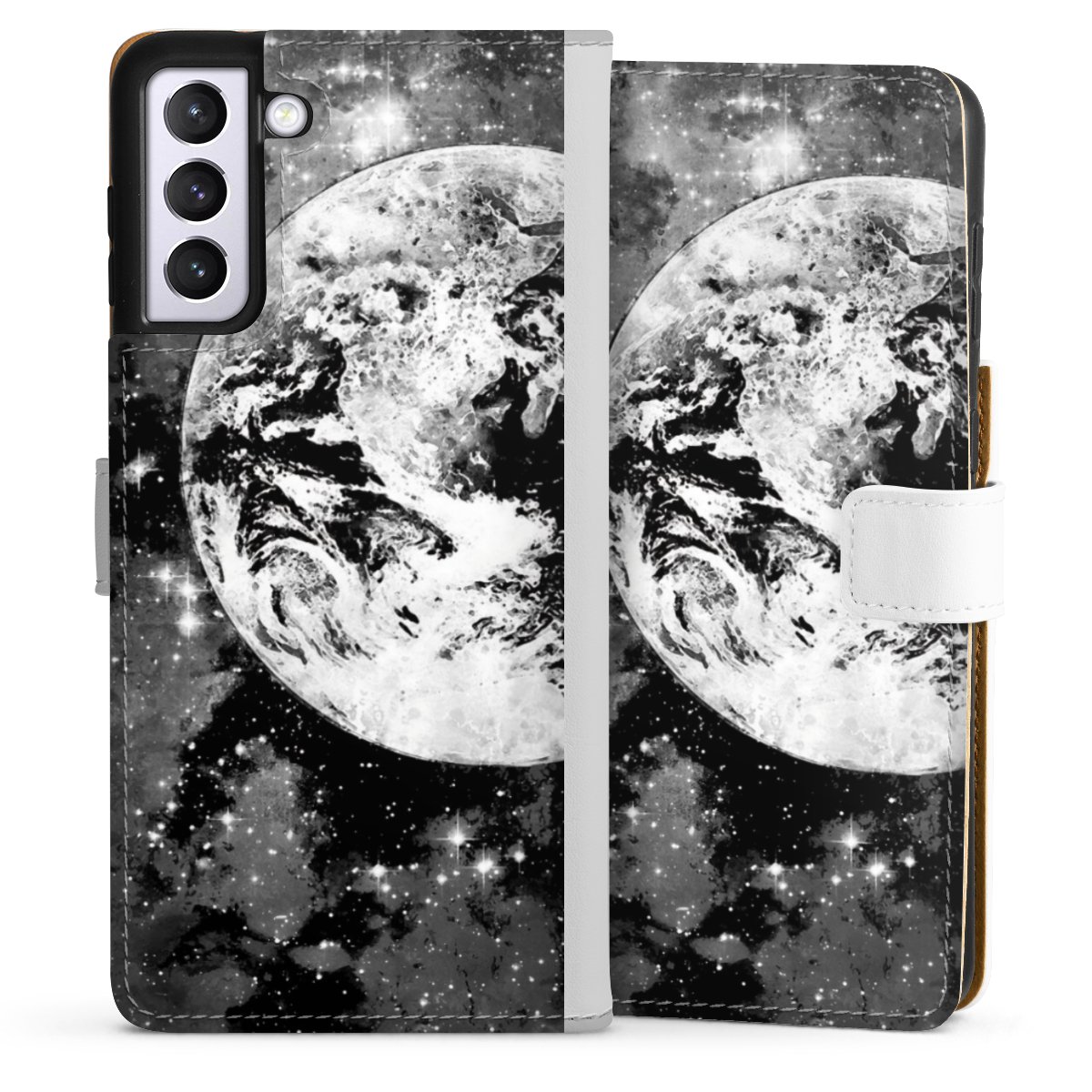 For our Sideflip Case we are using our advanced direct printing technology. The back and frontside are fully printabale, the inside of the phone bag is left unprinted. You can order the phone case without print, printed completely or also with a partial print.
