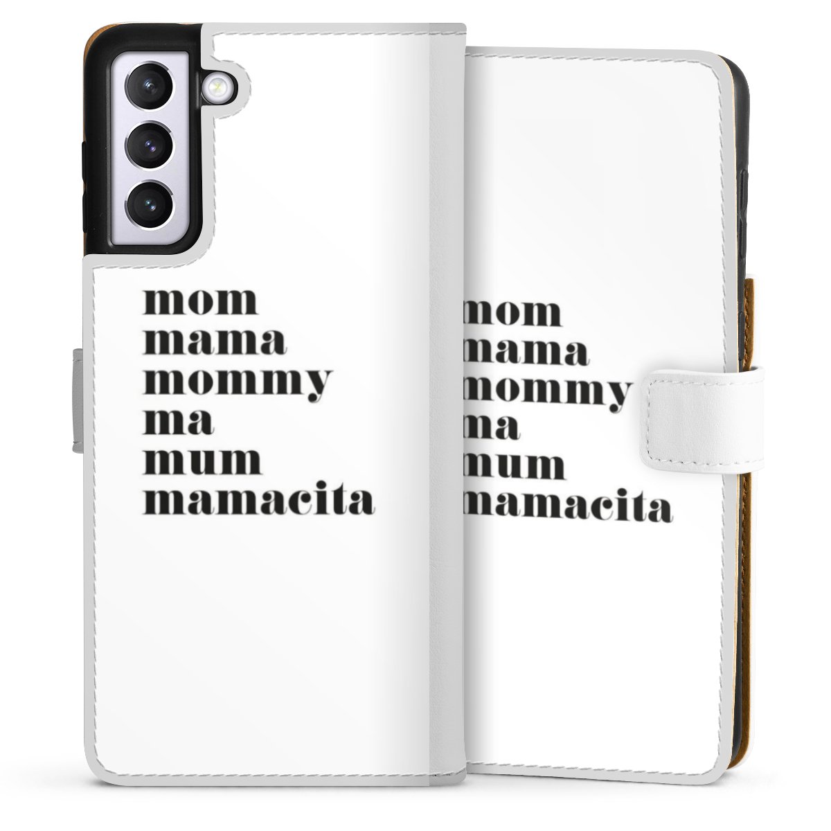 For our Sideflip Case we are using our advanced direct printing technology. The back and frontside are fully printabale, the inside of the phone bag is left unprinted. You can order the phone case without print, printed completely or also with a partial print.