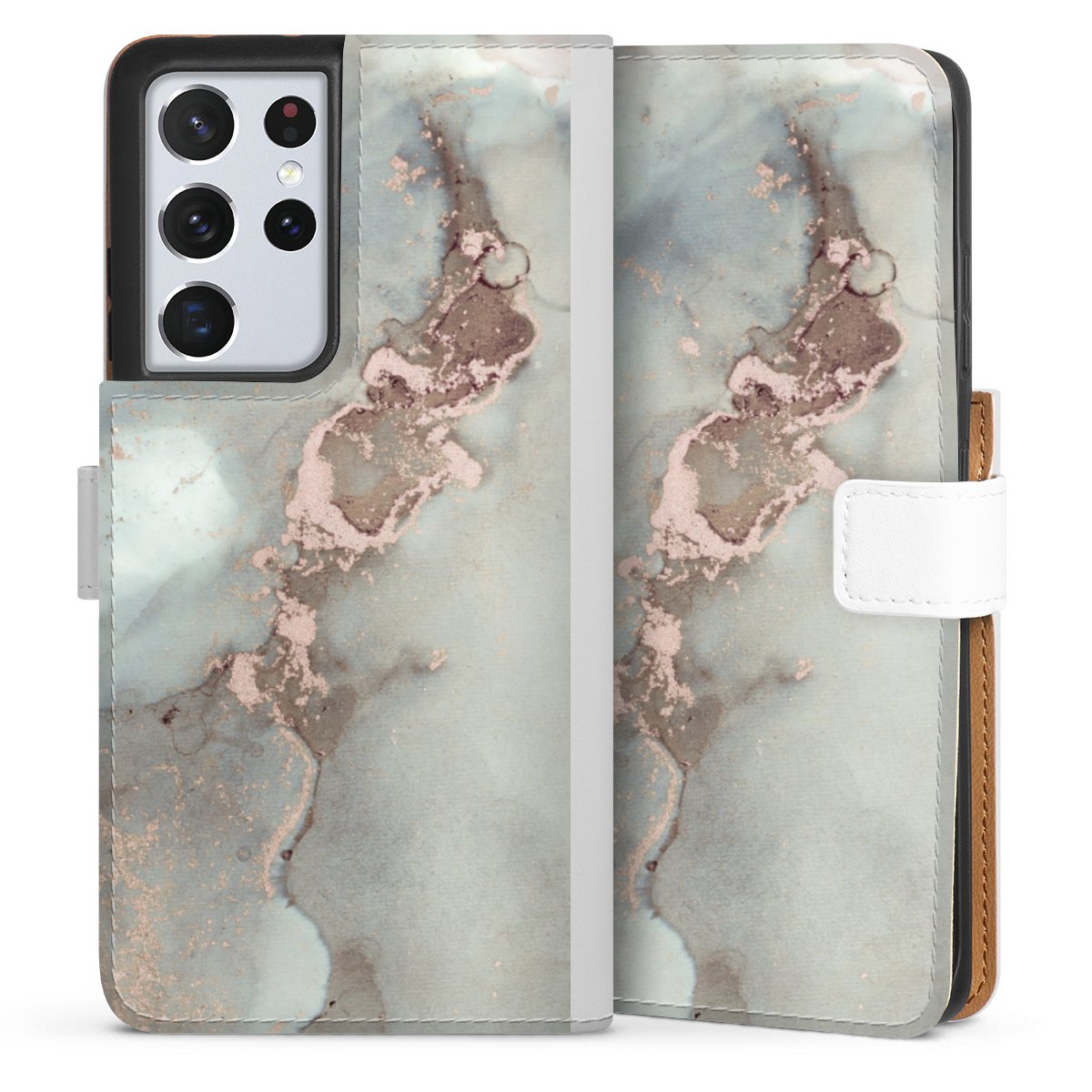 For our Sideflip Case we are using our advanced direct printing technology. The back and frontside are fully printabale, the inside of the phone bag is left unprinted. You can order the phone case without print, printed completely or also with a partial print.