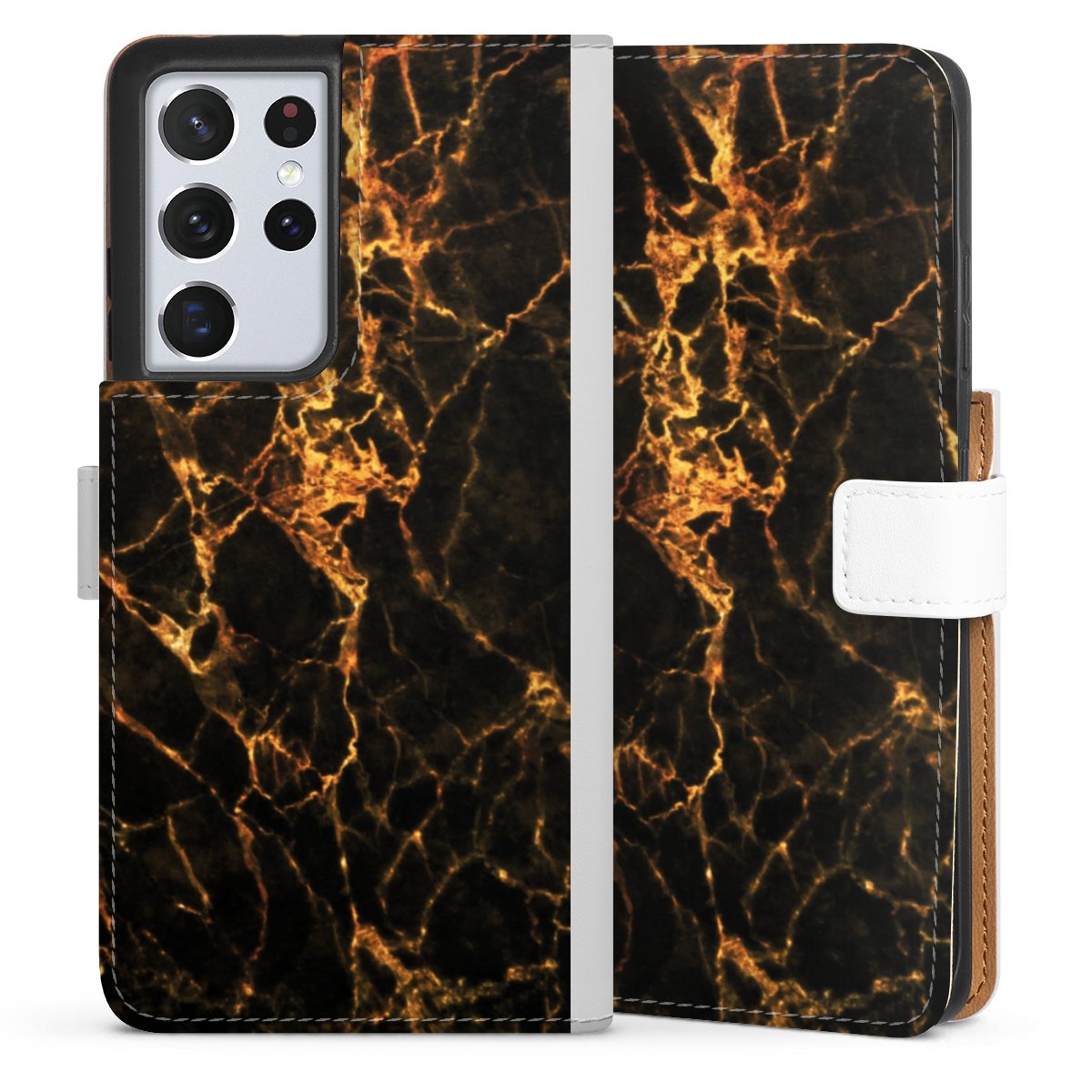 For our Sideflip Case we are using our advanced direct printing technology. The back and frontside are fully printabale, the inside of the phone bag is left unprinted. You can order the phone case without print, printed completely or also with a partial print.