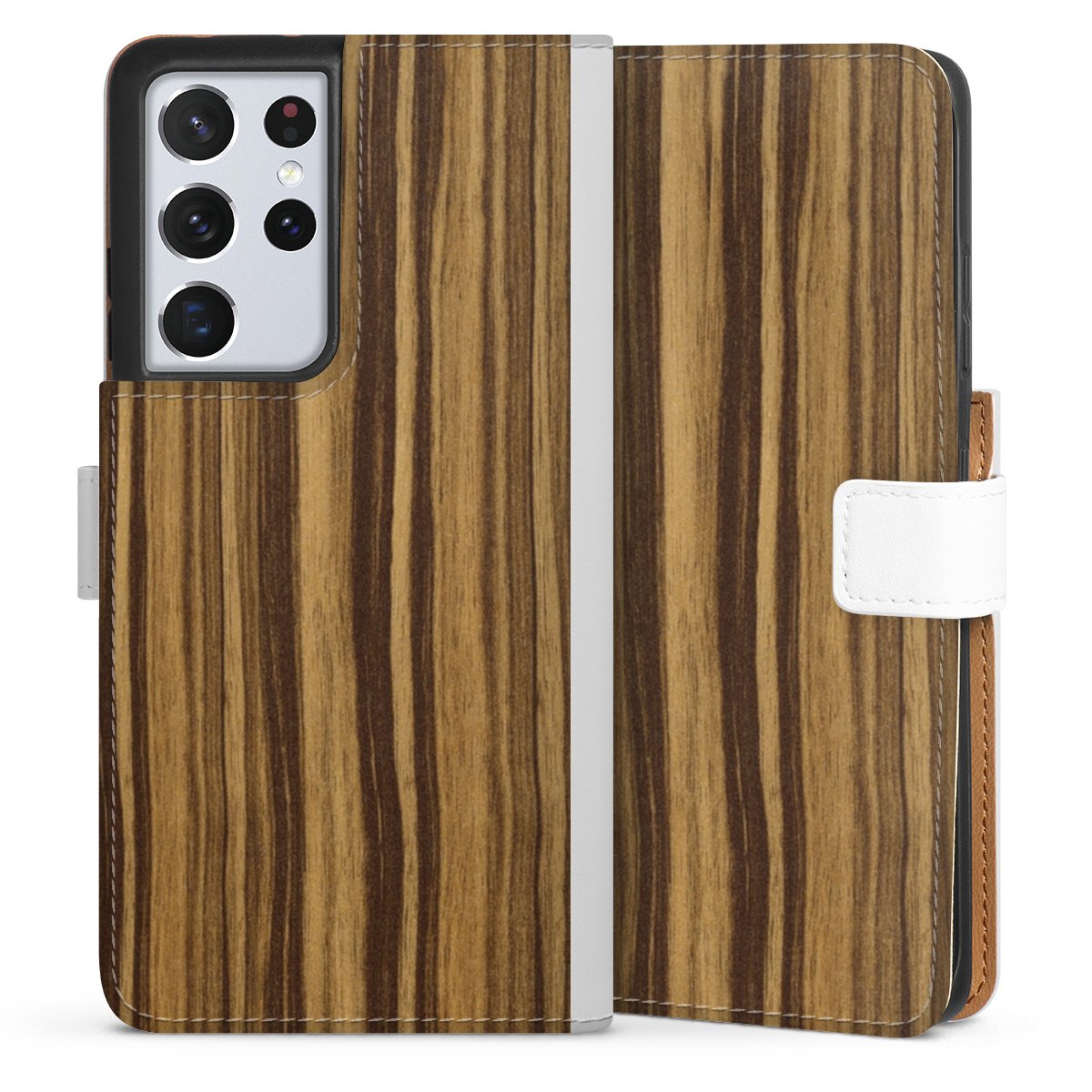 For our Sideflip Case we are using our advanced direct printing technology. The back and frontside are fully printabale, the inside of the phone bag is left unprinted. You can order the phone case without print, printed completely or also with a partial print.