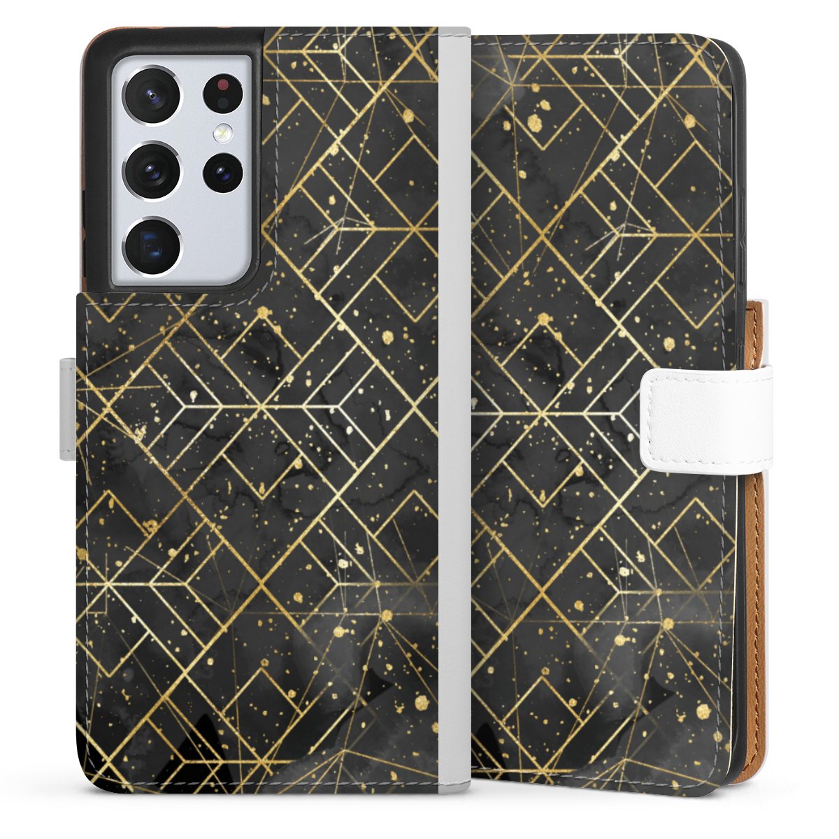 For our Sideflip Case we are using our advanced direct printing technology. The back and frontside are fully printabale, the inside of the phone bag is left unprinted. You can order the phone case without print, printed completely or also with a partial print.