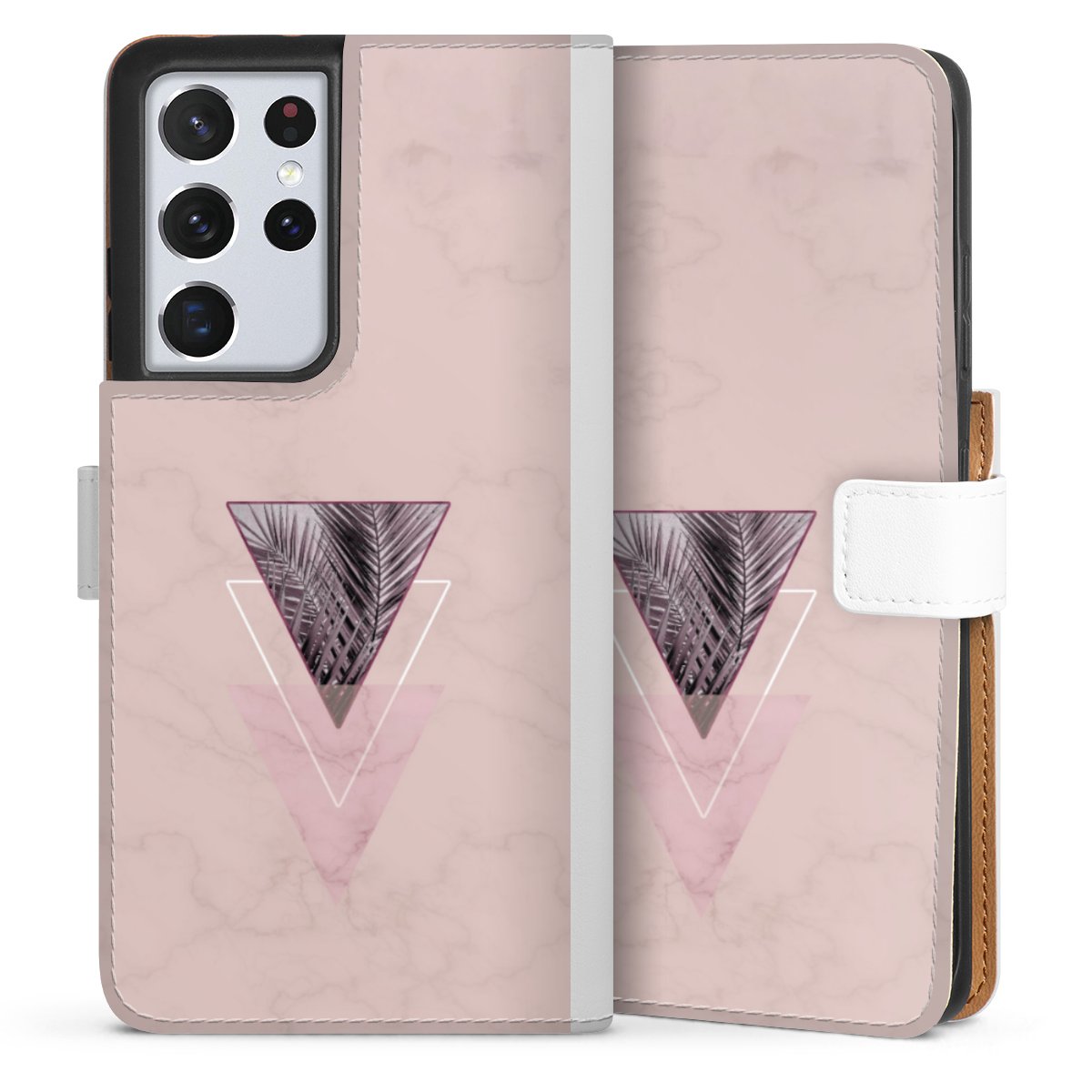 For our Sideflip Case we are using our advanced direct printing technology. The back and frontside are fully printabale, the inside of the phone bag is left unprinted. You can order the phone case without print, printed completely or also with a partial print.