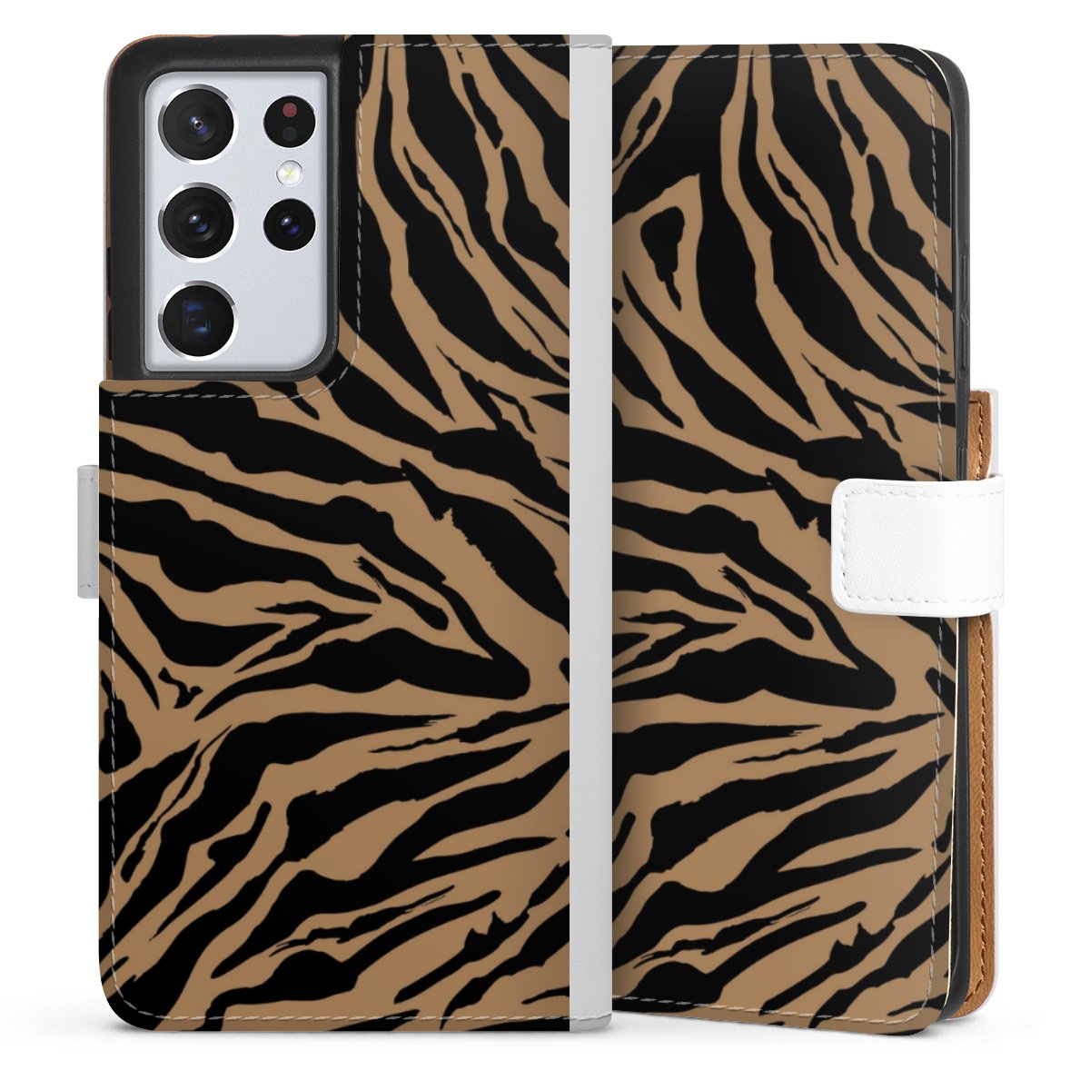 For our Sideflip Case we are using our advanced direct printing technology. The back and frontside are fully printabale, the inside of the phone bag is left unprinted. You can order the phone case without print, printed completely or also with a partial print.