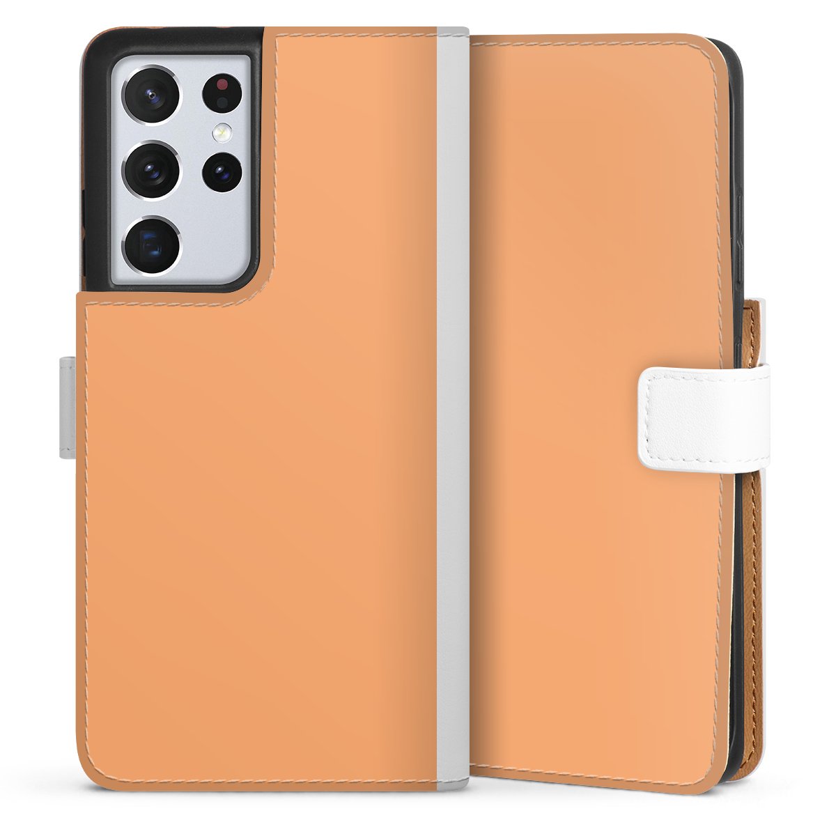 For our Sideflip Case we are using our advanced direct printing technology. The back and frontside are fully printabale, the inside of the phone bag is left unprinted. You can order the phone case without print, printed completely or also with a partial print.