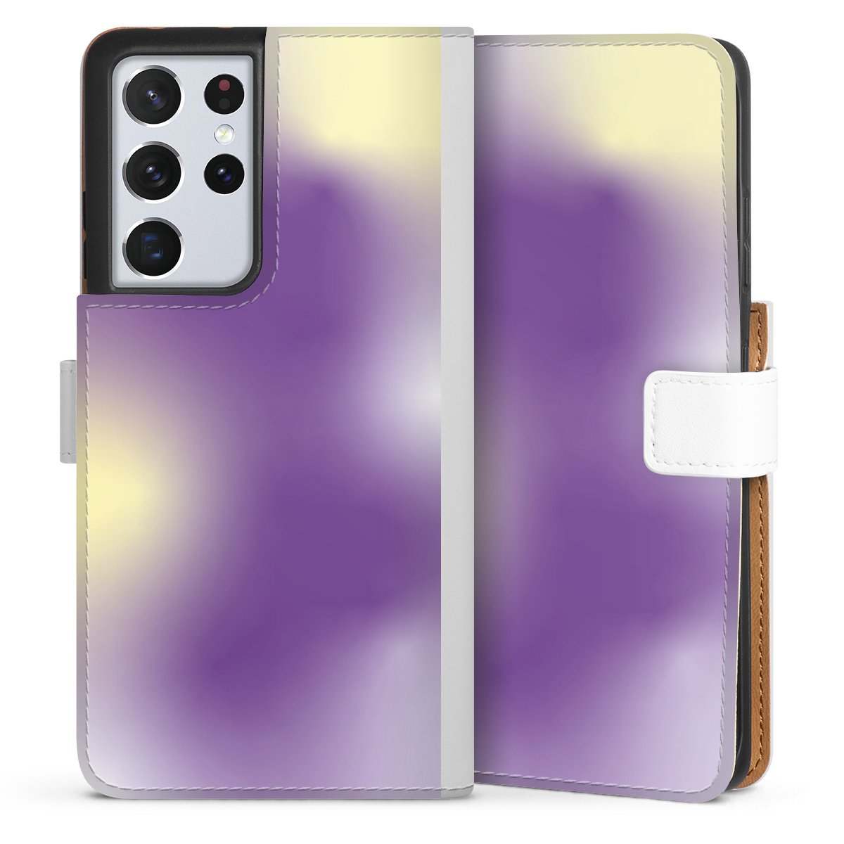 For our Sideflip Case we are using our advanced direct printing technology. The back and frontside are fully printabale, the inside of the phone bag is left unprinted. You can order the phone case without print, printed completely or also with a partial print.