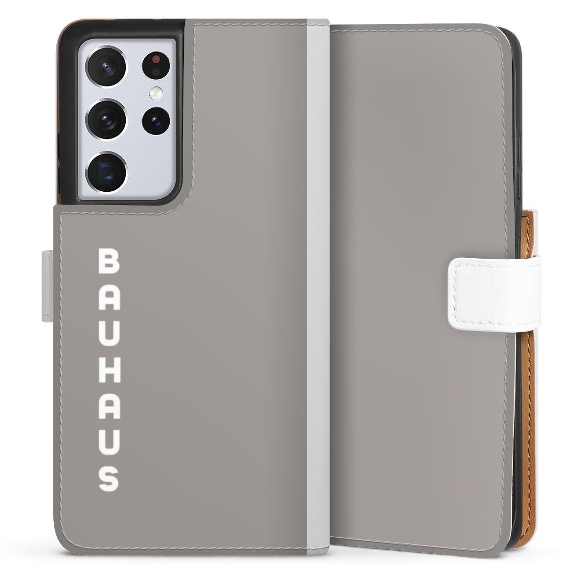For our Sideflip Case we are using our advanced direct printing technology. The back and frontside are fully printabale, the inside of the phone bag is left unprinted. You can order the phone case without print, printed completely or also with a partial print.