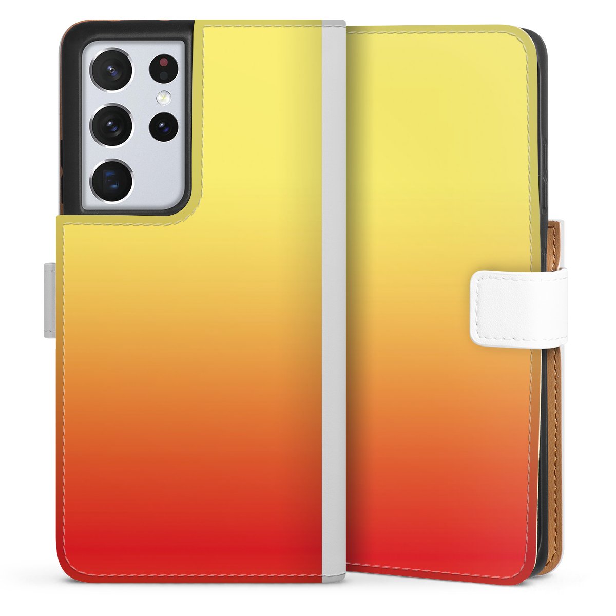 For our Sideflip Case we are using our advanced direct printing technology. The back and frontside are fully printabale, the inside of the phone bag is left unprinted. You can order the phone case without print, printed completely or also with a partial print.