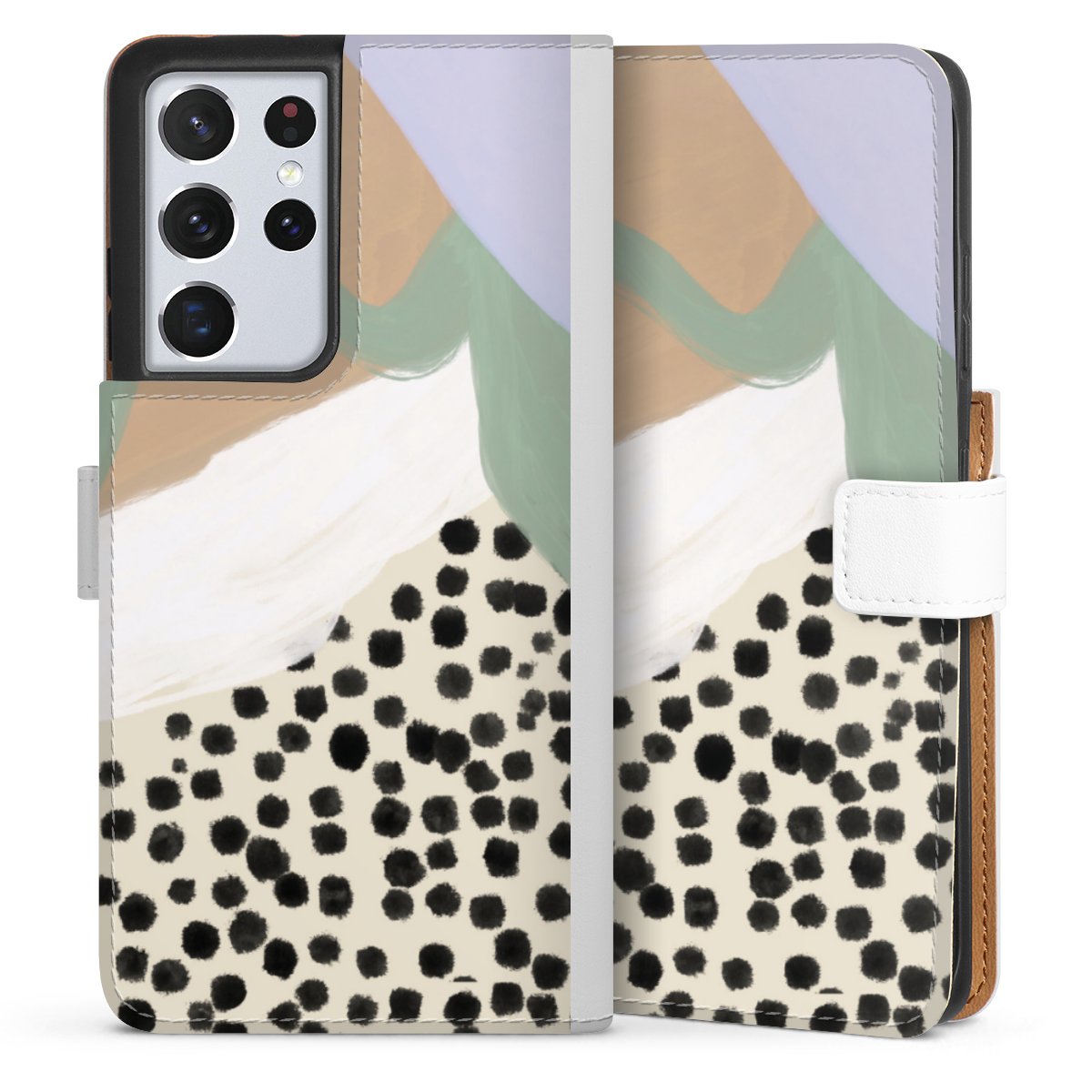 For our Sideflip Case we are using our advanced direct printing technology. The back and frontside are fully printabale, the inside of the phone bag is left unprinted. You can order the phone case without print, printed completely or also with a partial print.