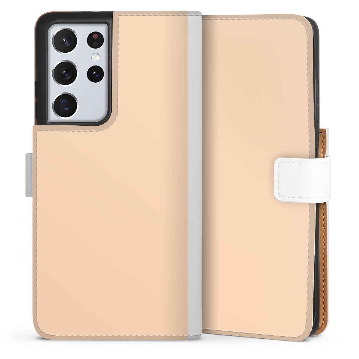 For our Sideflip Case we are using our advanced direct printing technology. The back and frontside are fully printabale, the inside of the phone bag is left unprinted. You can order the phone case without print, printed completely or also with a partial print.