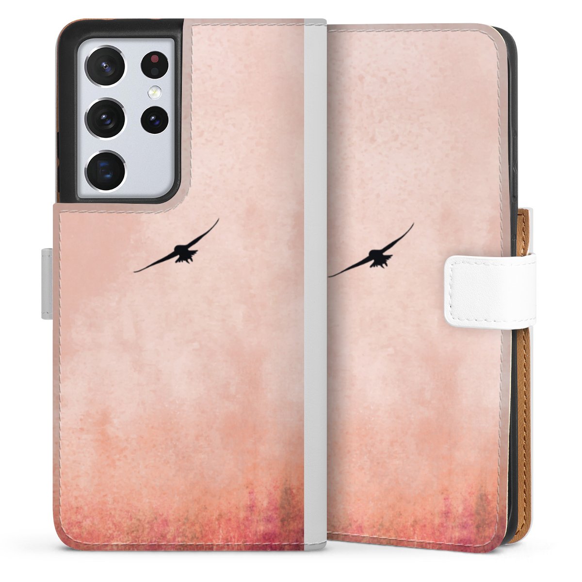For our Sideflip Case we are using our advanced direct printing technology. The back and frontside are fully printabale, the inside of the phone bag is left unprinted. You can order the phone case without print, printed completely or also with a partial print.