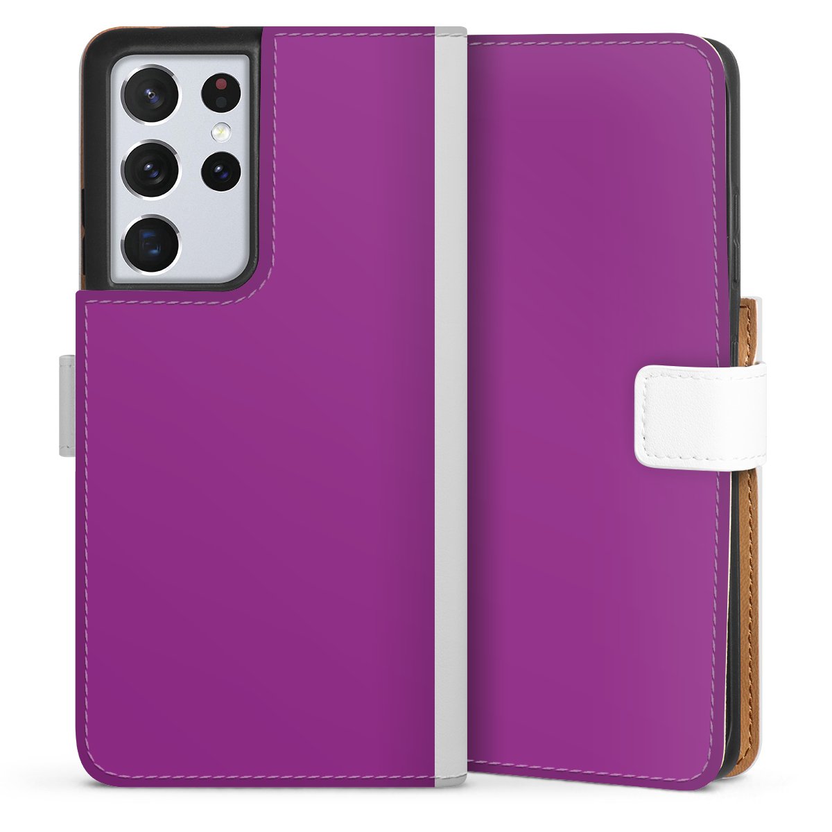 For our Sideflip Case we are using our advanced direct printing technology. The back and frontside are fully printabale, the inside of the phone bag is left unprinted. You can order the phone case without print, printed completely or also with a partial print.