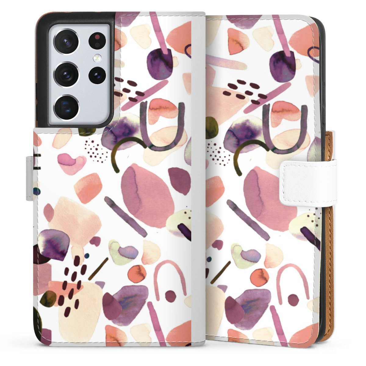 For our Sideflip Case we are using our advanced direct printing technology. The back and frontside are fully printabale, the inside of the phone bag is left unprinted. You can order the phone case without print, printed completely or also with a partial print.