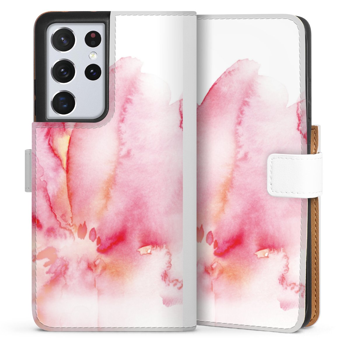 For our Sideflip Case we are using our advanced direct printing technology. The back and frontside are fully printabale, the inside of the phone bag is left unprinted. You can order the phone case without print, printed completely or also with a partial print.