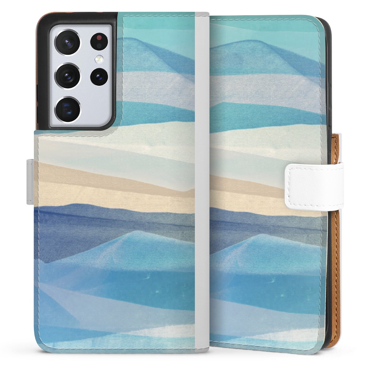 For our Sideflip Case we are using our advanced direct printing technology. The back and frontside are fully printabale, the inside of the phone bag is left unprinted. You can order the phone case without print, printed completely or also with a partial print.
